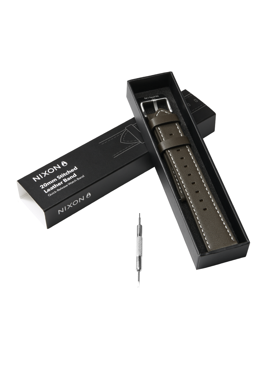 Just like our standard leather band, kick it up a notch with 20mm Stitched Leather Band. A contrasted stitch and upgrade to first class. It's 20mm tapered down for a balanced fit with calf suede backing.