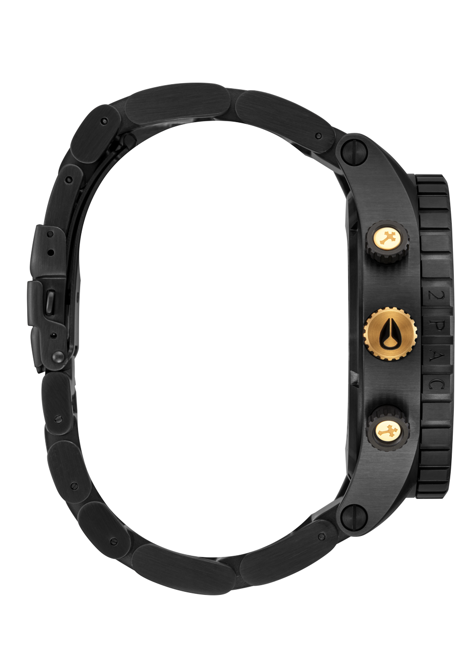 51mm, 300 meter / 30 ATM custom solid stainless steel, solid stainless steel unidirectional rotating bezel with countdown timer, hardened mineral crystal, screw down crown and pushers, stainless steel screw down caseback and screw pin lugs.