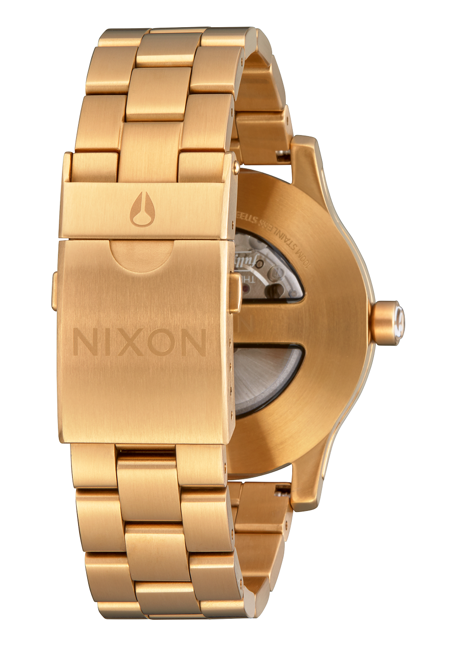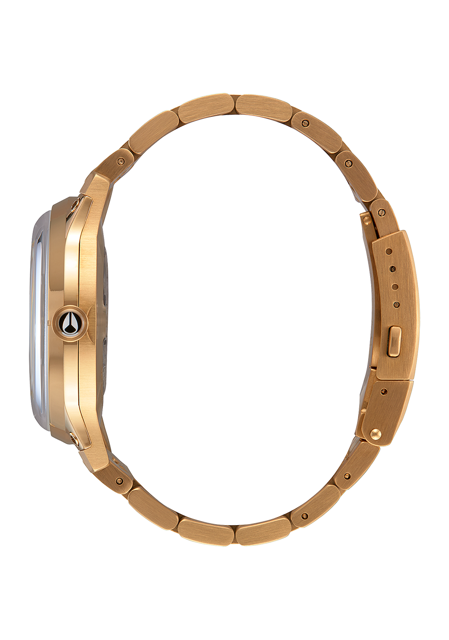 The unique two-piece design eliminates the need for a traditional caseback, while the split window gives a view of the inner workings of the automatic movement and the custom crystal shape flows seamlessly into the case with angled edges. The domed dial features LUME block indices and LUME accents on the hands for visibility even in low light conditions.