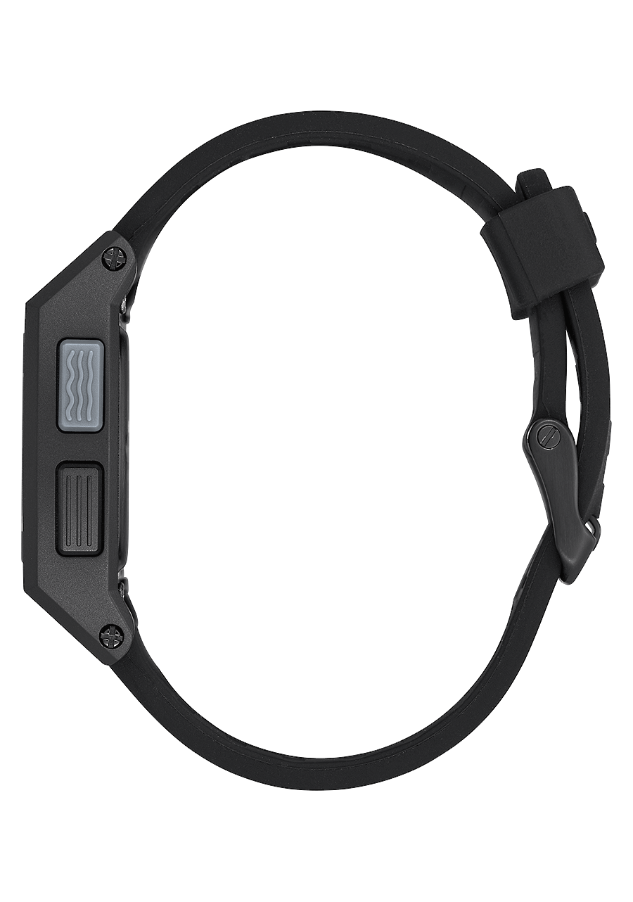 22 mm custom injection molded ultra-soft silicone band with a patented locking looper and a solid stainless steel buckle with screw-bar attachment.