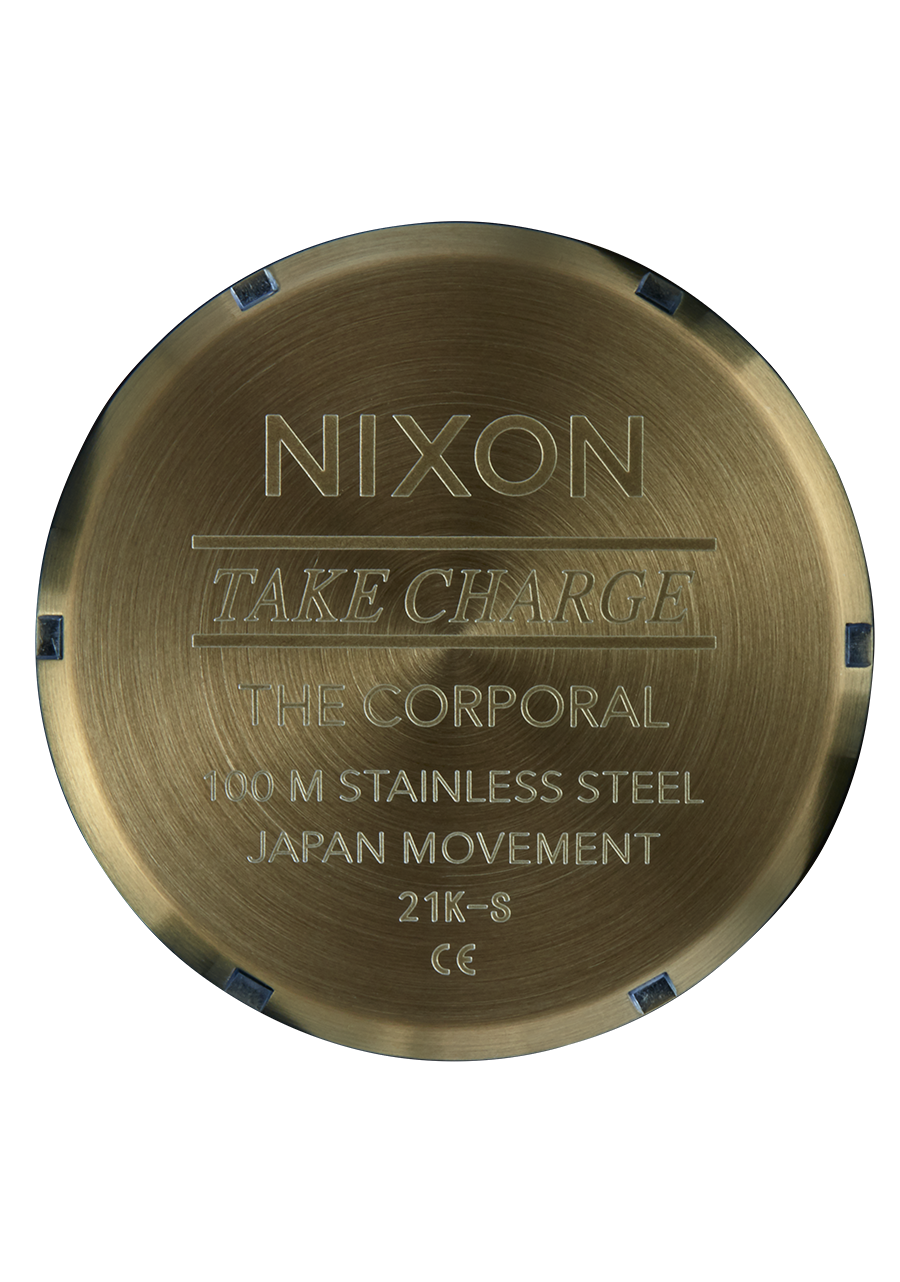 The Nixon Corporal watch uses a Miyota Japanese quartz 3-hand movement.