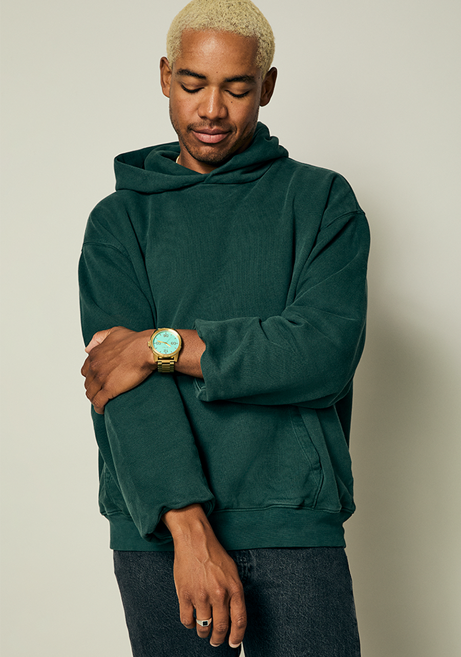 The field watch with a clear, tactical advantage. The face is protected by a recessed crystal and the oversized bezel brings out the best in rugged durability. Its functional design combined with details like faceted links that look like a mountain range when viewed from the side means the Corporal always has the high ground.