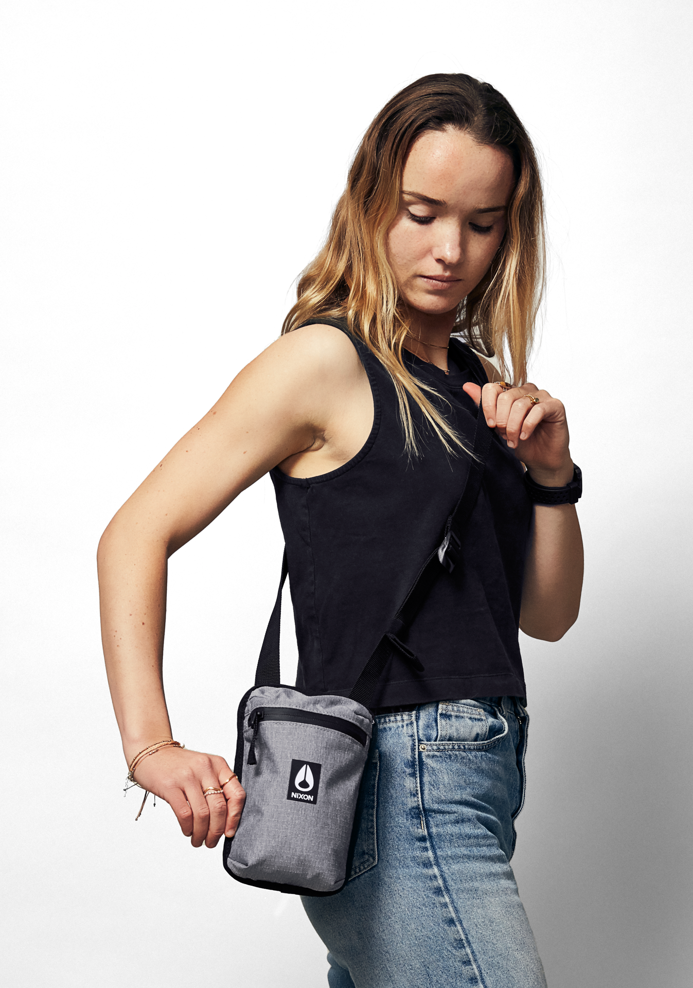 Zippered top-load main compartment. Back zippered stash pocket. Interior mesh slip-pocket with a key fob. Plus, weather-resistant coated exterior zippers.