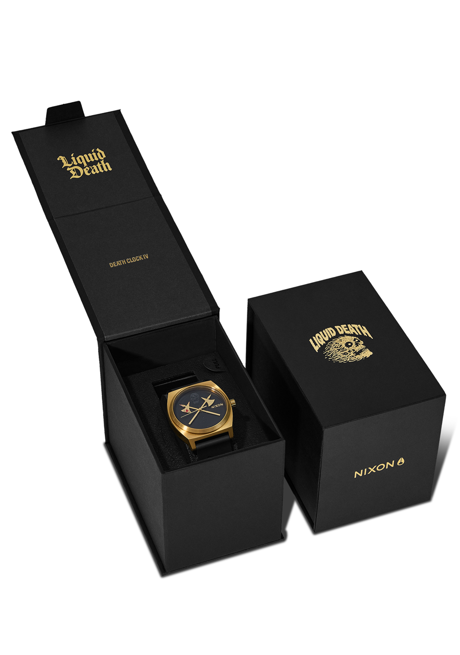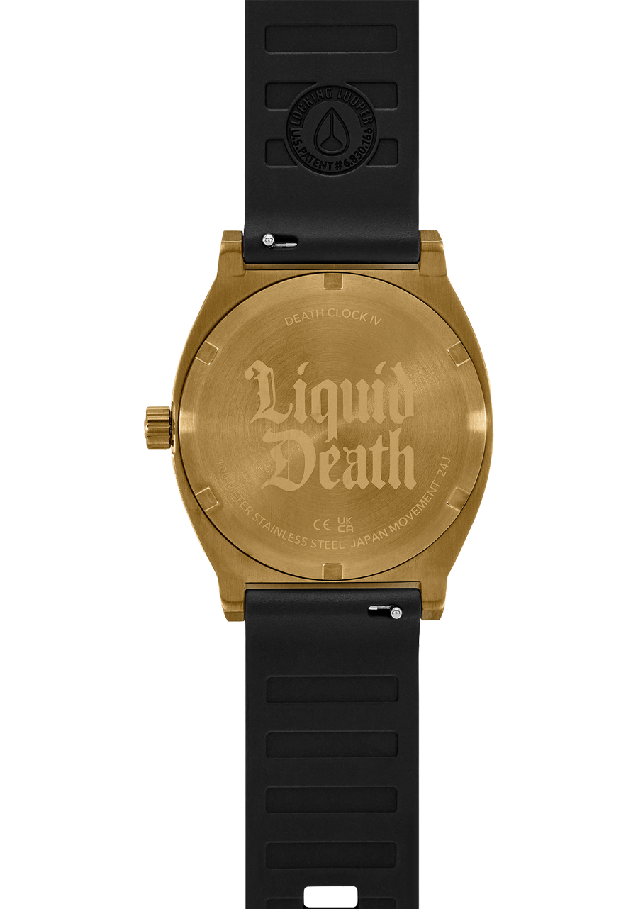 Everybody wants to rule the world. But now with the Death Clock IV from Liquid Death x Nixon, you actually can. Featuring a premium high-performance FKM rubber band and 100m/10 ATM bloodproof rating, the Death Clock will help you hack your thirst to pieces and then use those pieces to build a corporate ladder that you can climb straight to the top.