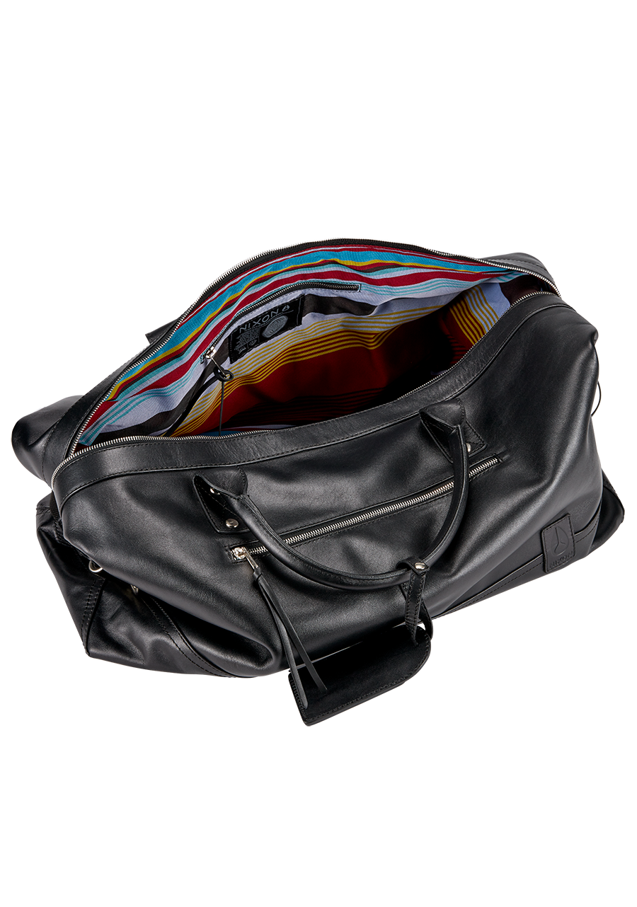 100% U.S. Hide Leather. 100% Polyester Jacquard rug stripe lining.