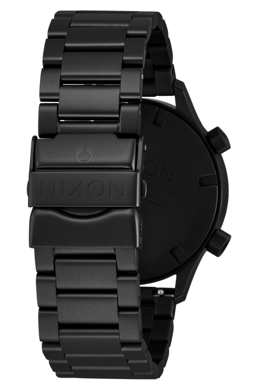 40mm custom solid stainless steel case and fixed bezel with a 100 meter / 10 ATM water rating. Includes a hardened mineral crystal, triple gasket stainless steel crown and stainless steel screw down caseback.