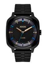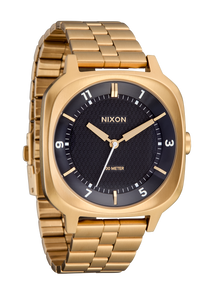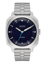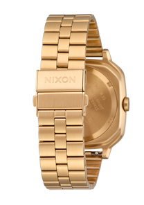It features a quick-adjust stainless steel clasp that allows tool-free resizing. Simply unbuckle the watch and find the small panel with the "NIXON" wordmark on it. Flip that up and you'll be able to adjust the bracelet size.