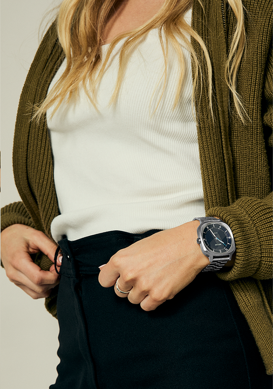The Fremont 40 comes with a "squircle" case, which means it's somewhere between a square and a circle. The quick-adjust stainless steel bracelet means that you can resize the fit without the need for any tooling.