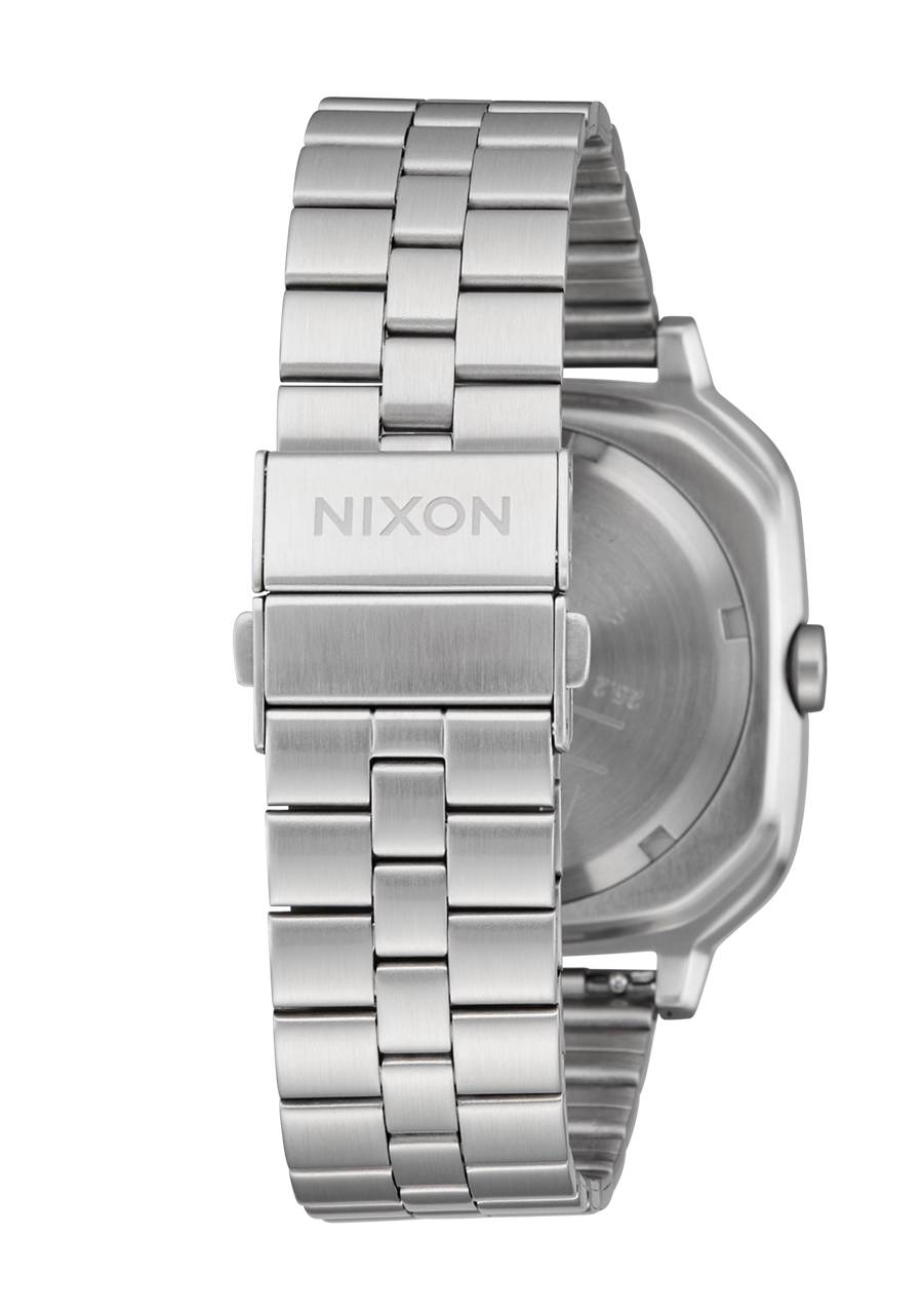 It features a quick-adjust stainless steel clasp that allows tool-free resizing. Simply unbuckle the watch and find the small panel with the "NIXON" wordmark on it. Flip that up and you'll be able to adjust the bracelet size.
