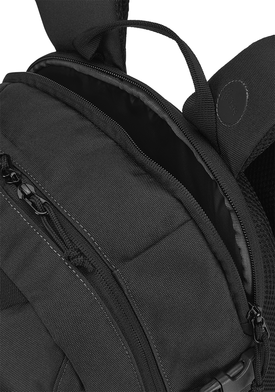 Large main compartment with internal organization pockets. Laptop (15"") storage with external zipper access. External skate straps, water bottle pocket, zippered stash pocket, and multi-use gear loop. Small removable mesh pocket attached to the strap, great size for travel sized hand sanitizer.