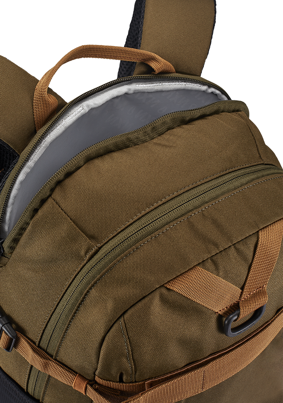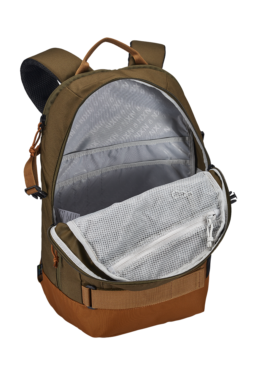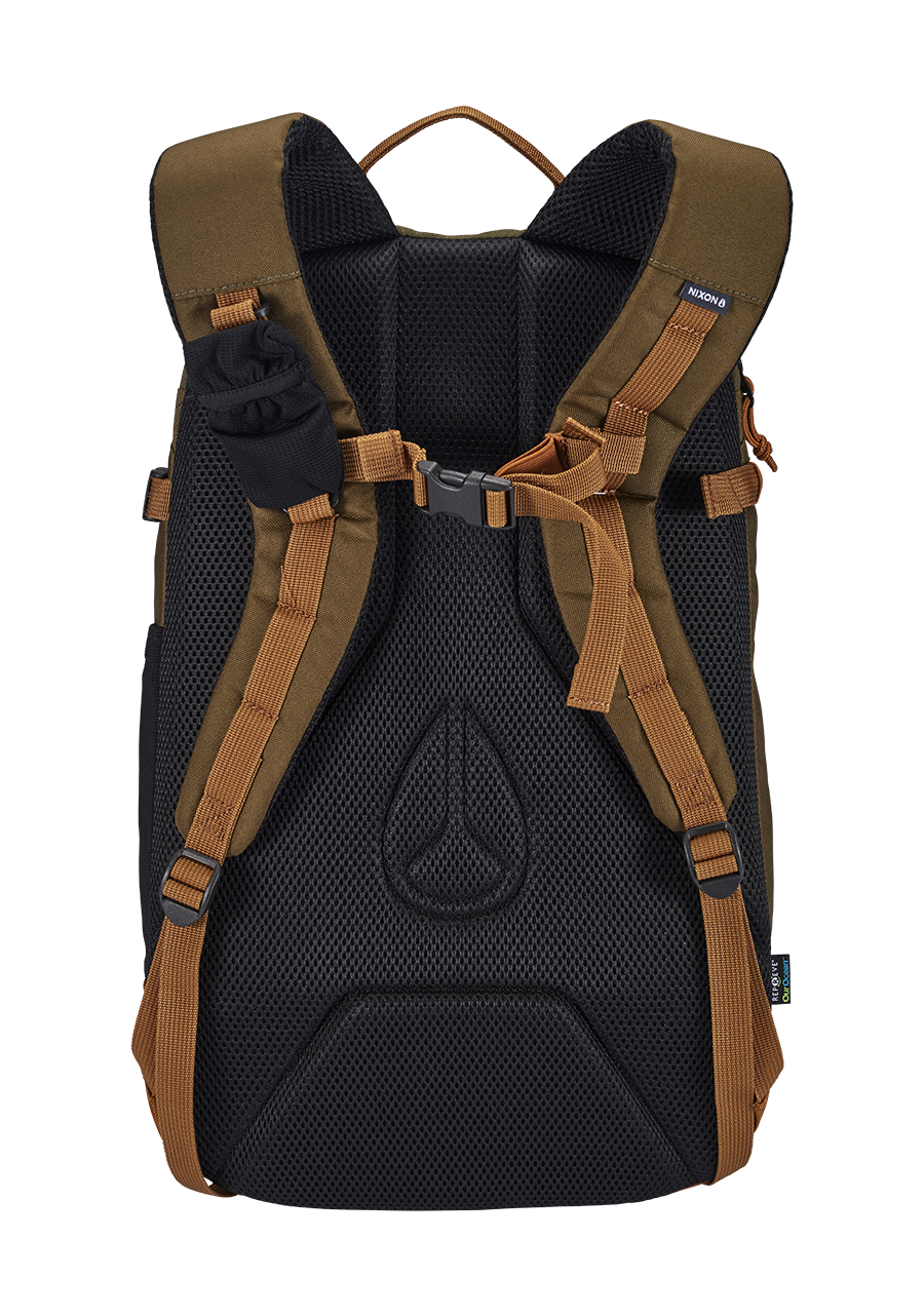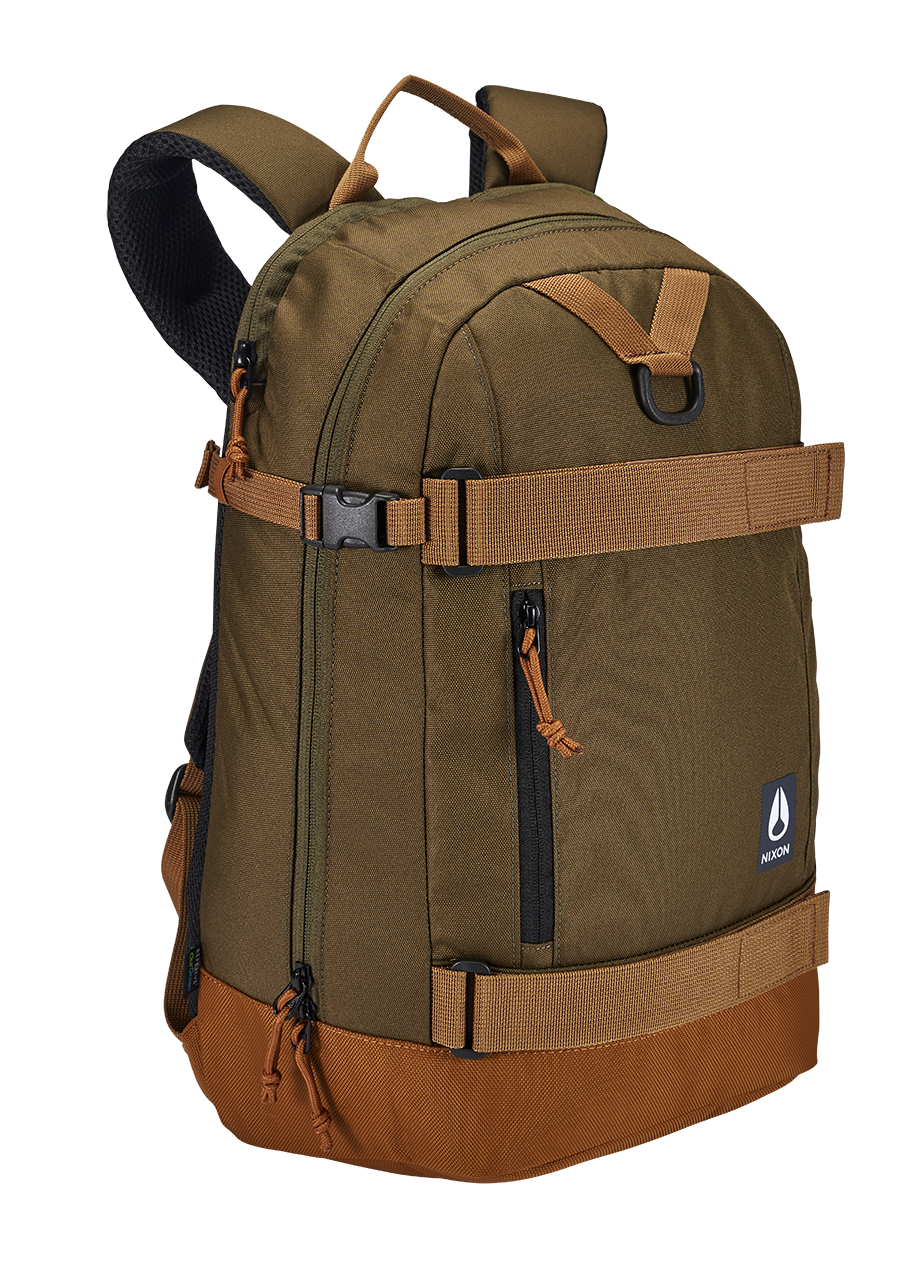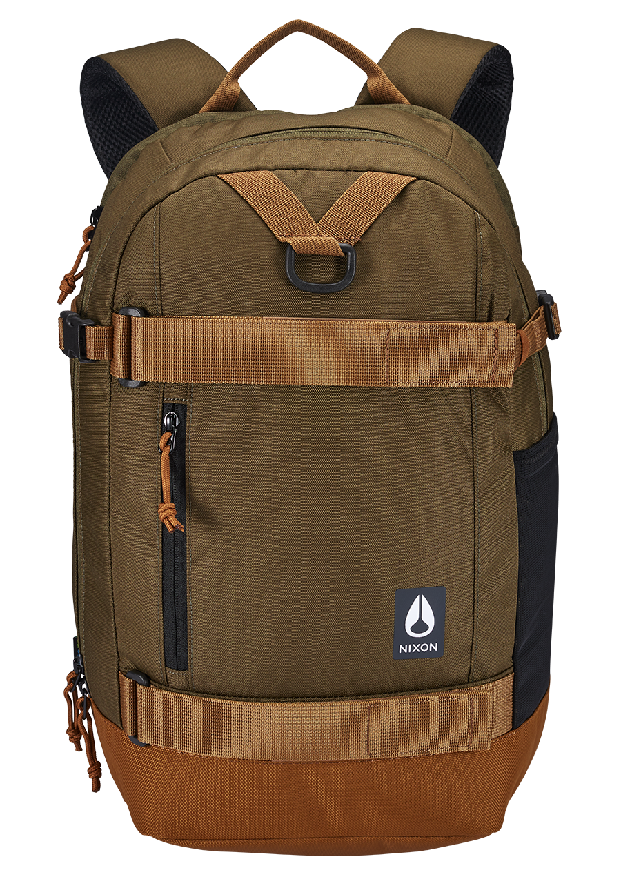 Large main compartment with internal organization pockets. Laptop (15"") storage with external zipper access. External skate straps, water bottle pocket, zippered stash pocket, and multi-use gear loop. Small removable mesh pocket attached to the strap, great size for travel sized hand sanitizer.