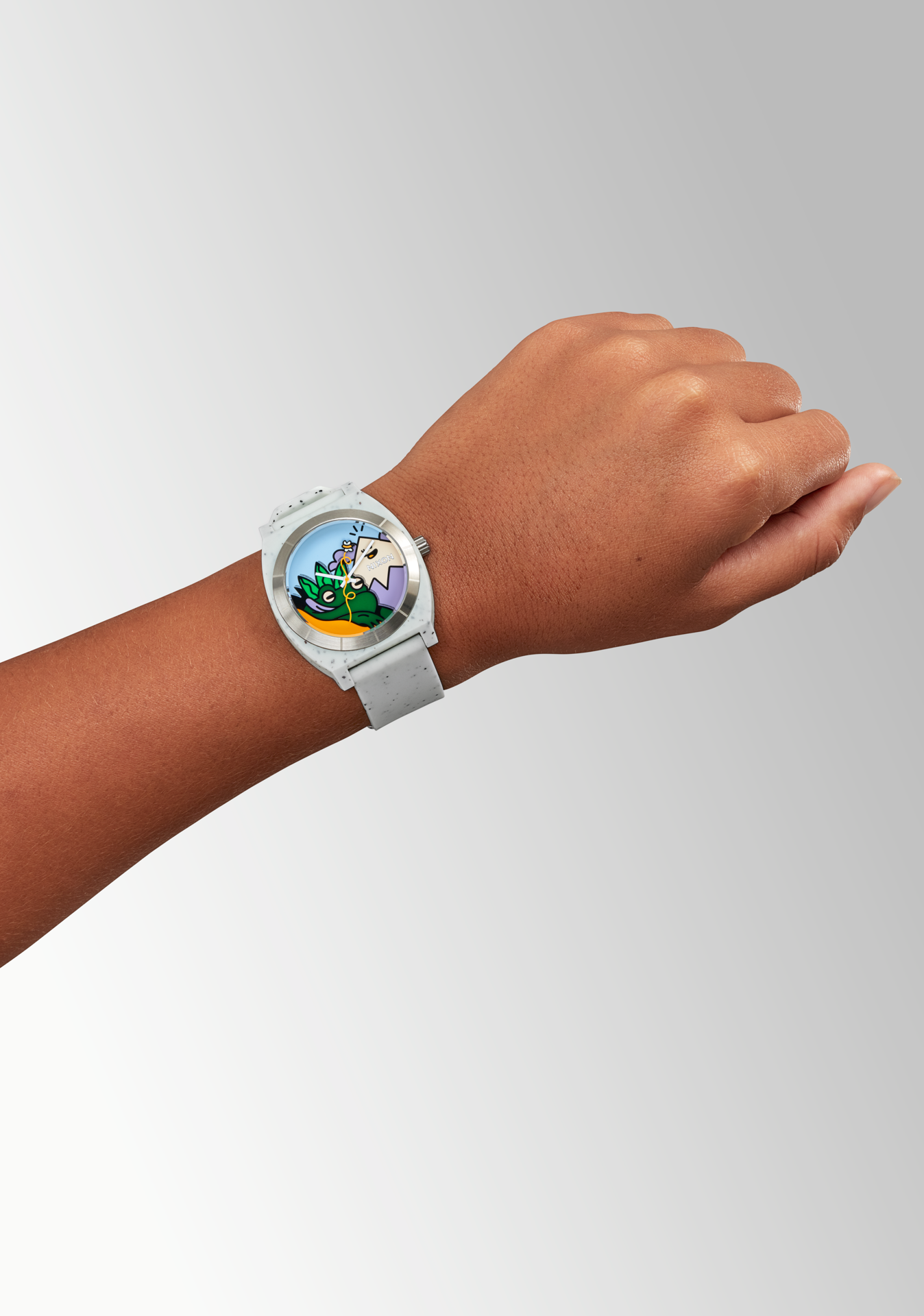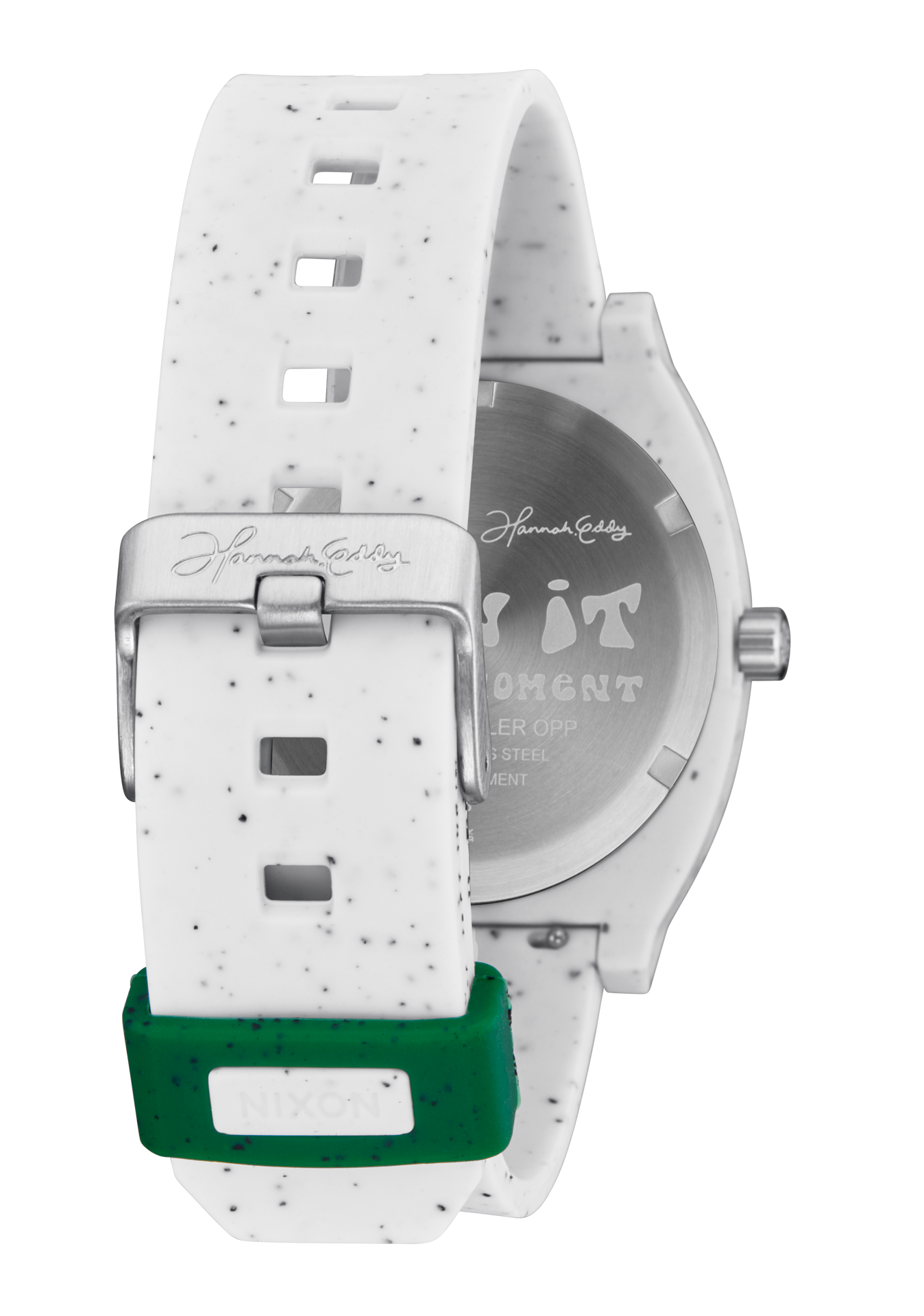 Hannah Eddy found a proper canvas for her artistic expression. The Time Teller OPP's minimalist design now features her beloved outdoor flavor. Reducing waste from the environment, the case is made with Other People's Plastic. Plus, the upgraded performance band with quick-release is up for adventure. Take in the scene and feel good.