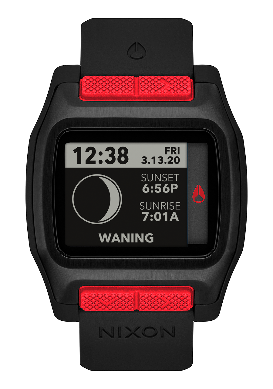 The Nixon High Tide watch comes pre-programmed with tide, sun, and moon data for over 550 global beaches, but it does not allow users to add their own custom locations.