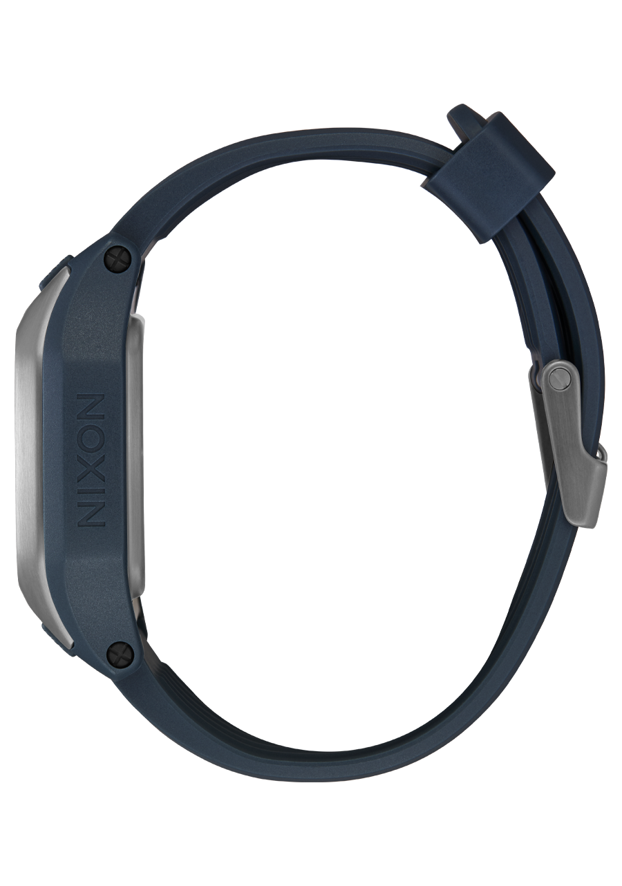 The Nixon High Tide watch is designed to be highly comfortable and durable. The strap is a rubber blend that is injection-molded for maximum wearability and secured by a double-locking looper. This design, similar to a high-quality wetsuit, supports both daily wear and use under wetsuits, providing a comfortable fit during surfing activities with its 100 meter / 10 ATM water rating.