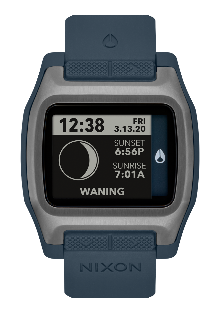 The Nixon High Tide watch comes pre-programmed with tide, sun, and moon data for over 550 global beaches, but it does not allow users to add their own custom locations.