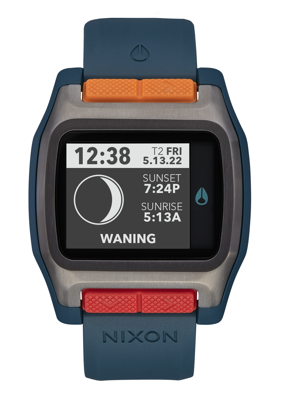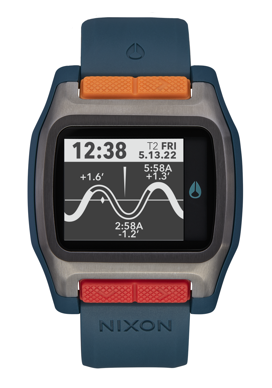 The Nixon High Tide watch comes pre-programmed with tide, sun, and moon data for over 550 global beaches, but it does not allow users to add their own custom locations.