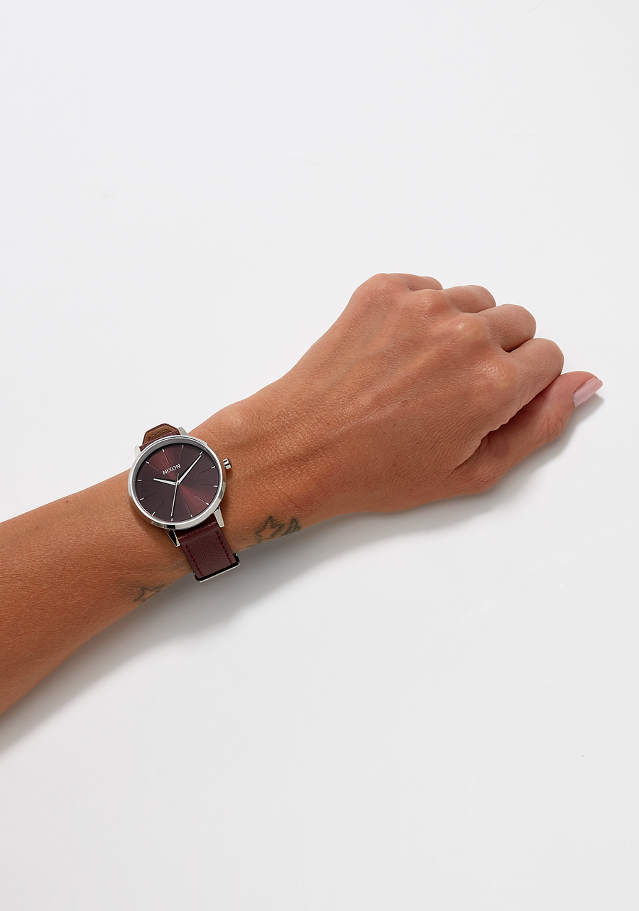 37mm solid stainless steel case with a 50 meter / 5 ATM water rating. Comes with a hardened mineral crystal, stainless steel snap fit caseback and spring pin lugs.