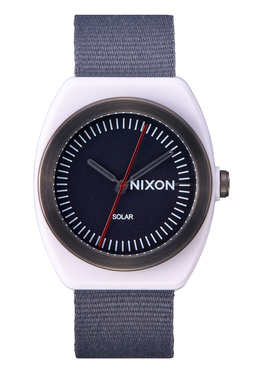 Dial includes applied stick indices and Nixon wordmark logo. Comes with wireframe hour and minute hands. Seconds hand stretches the length of the watch dial.