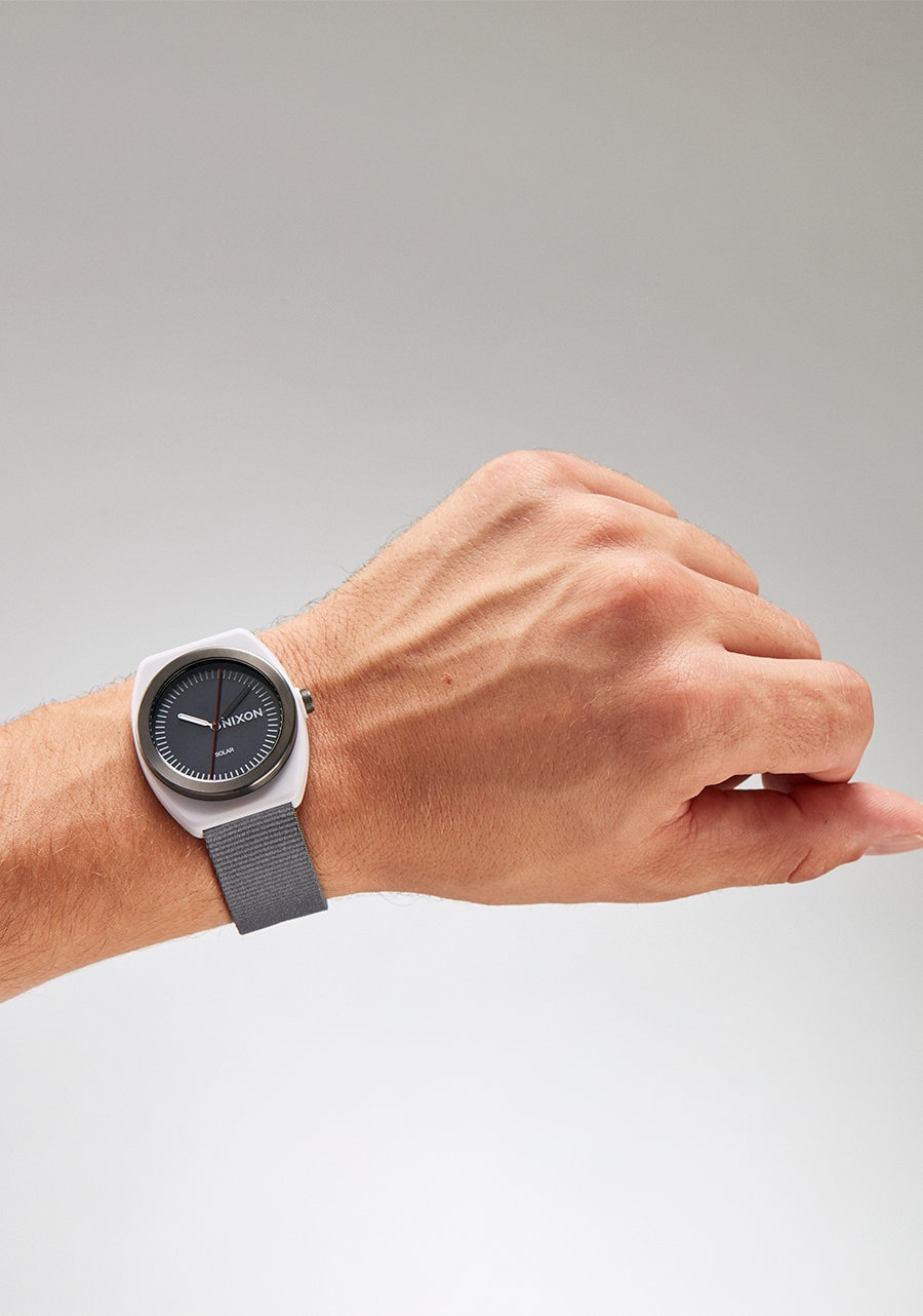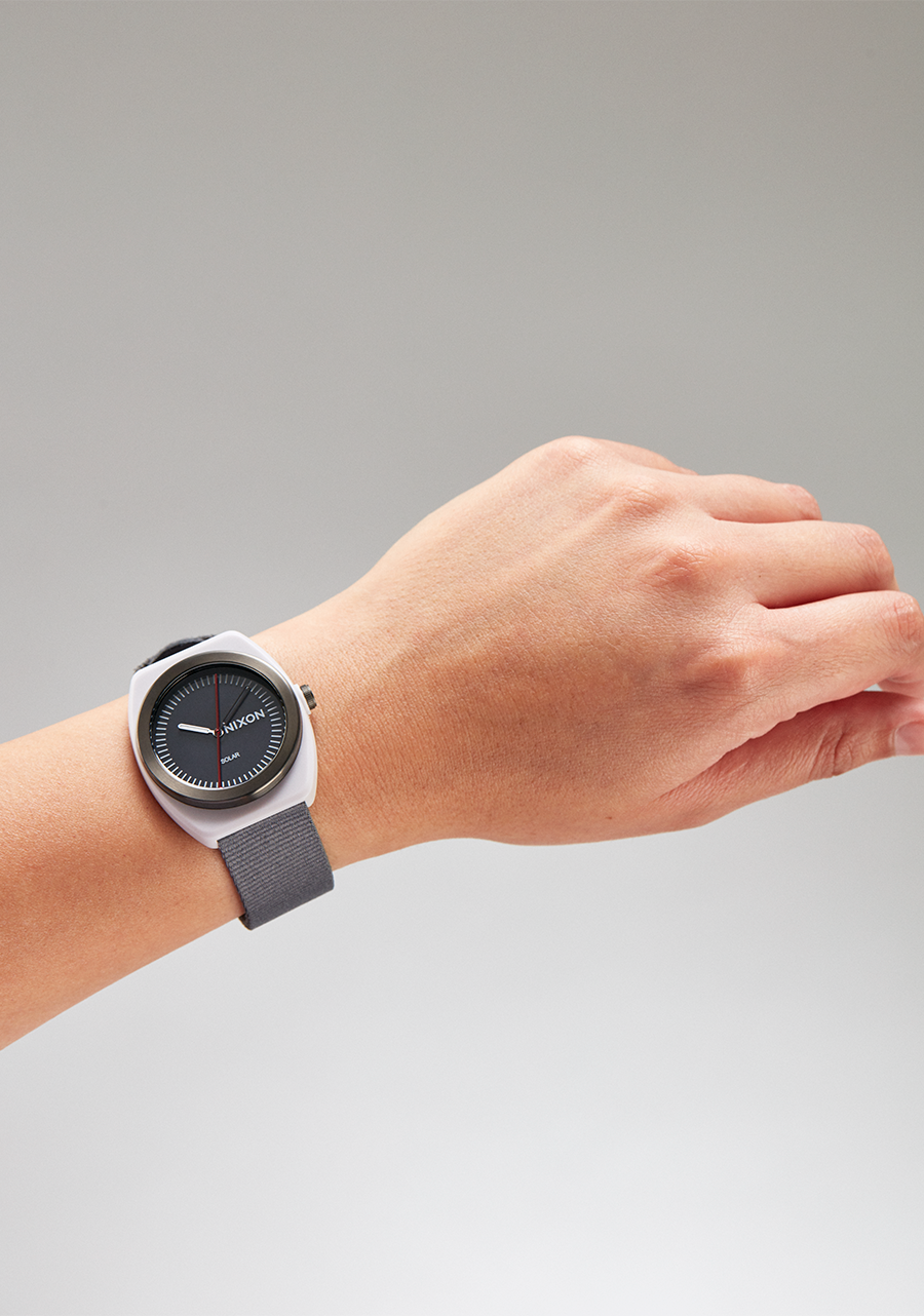 An ambitious, eco-friendly watch combines progressive design with solar charging and recycled ocean plastic construction, making the Light-Wave a clean, green, time-telling machine. Look closely at the translucent face and catch a glimpse of the solar panel within. Back out a bit and notice the head-turning dial details and the unique case and strap design. Then realize you'll never change another battery and know you're on a higher frequency.