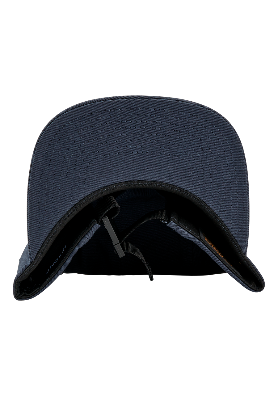 Cotton classic jockey strapback cap. Metal eyelets. Woven logo label detail. Snap buckle closure.