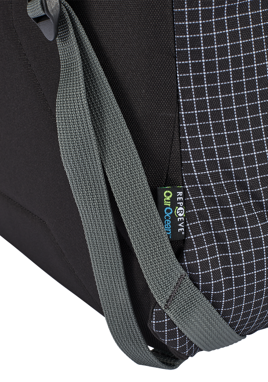 Outside: - Main Body: 600D REPREVE® Our Ocean - Bottom Panel: 1680D REPREVE® - Straps: PP Webbing - Buckles: Plastic Inside: - Liner: 200D Recycled PET