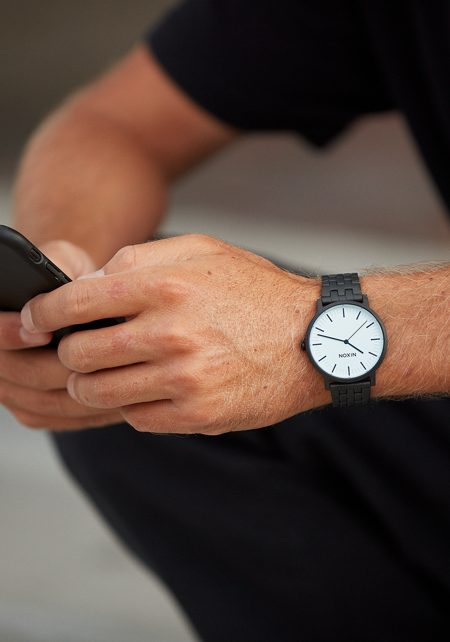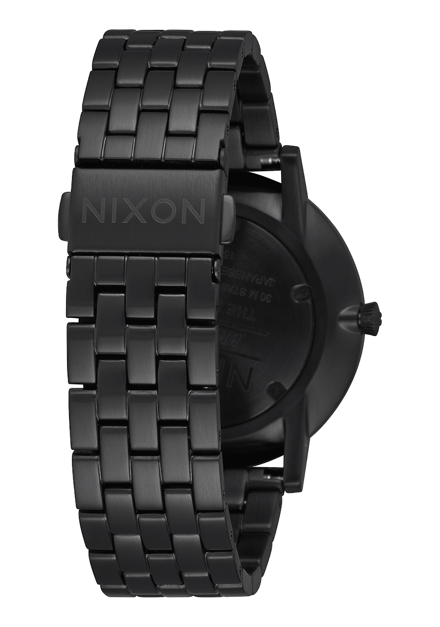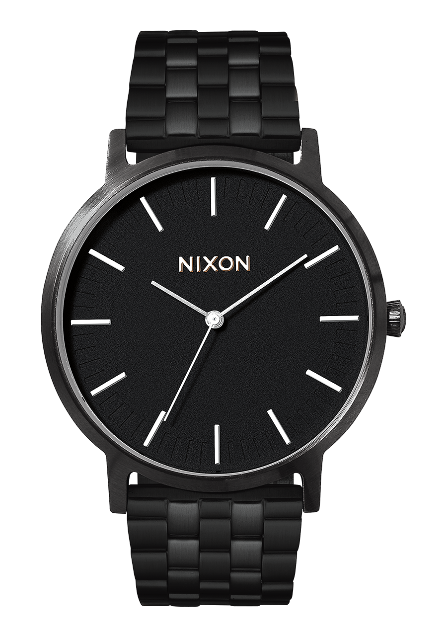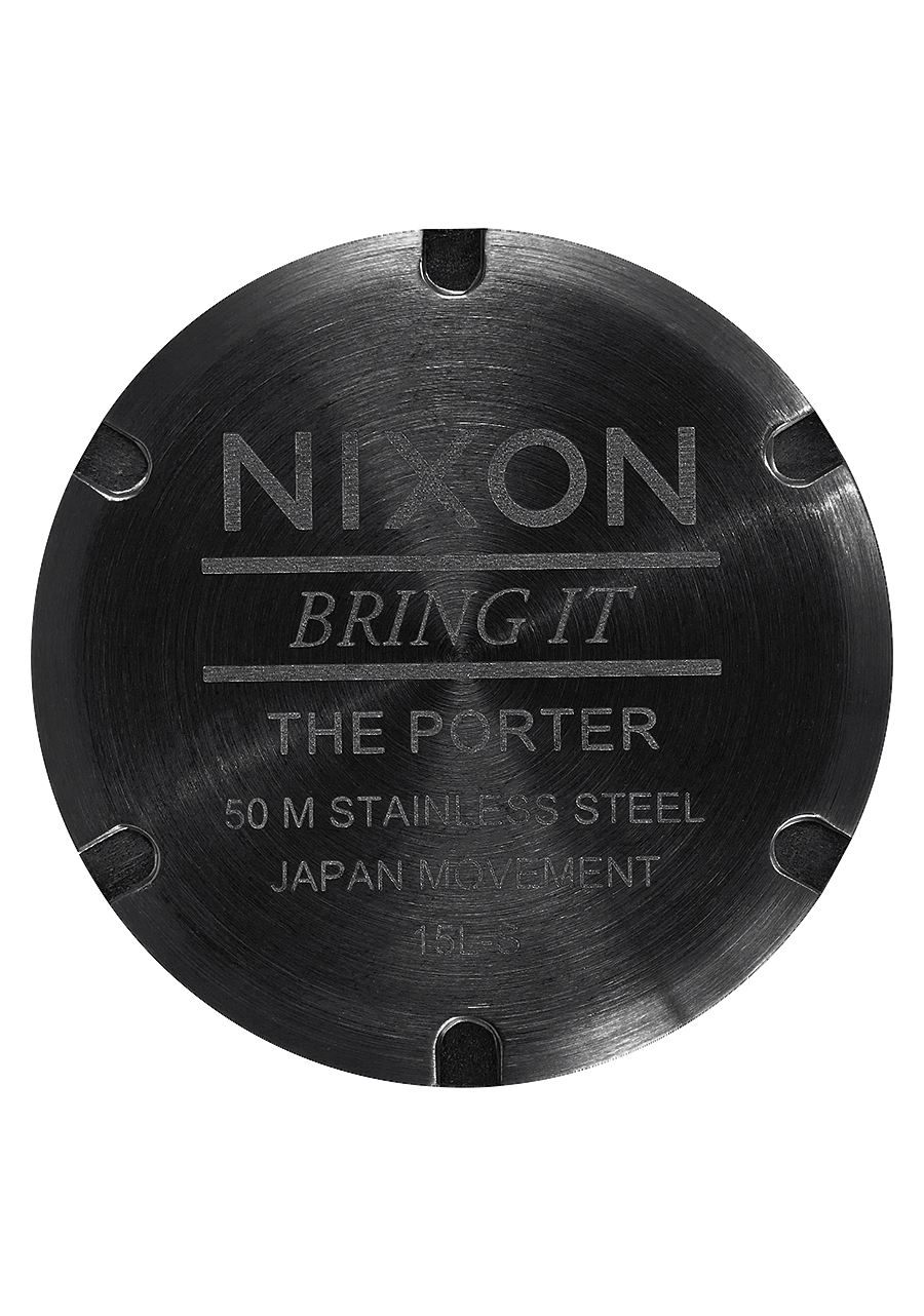 The Nixon Porter features a custom stainless steel case and bracelet. The watch is designed for everyday durability, with a hardened mineral crystal, double gasket crown, and screw-down stainless steel caseback for enhanced protection.