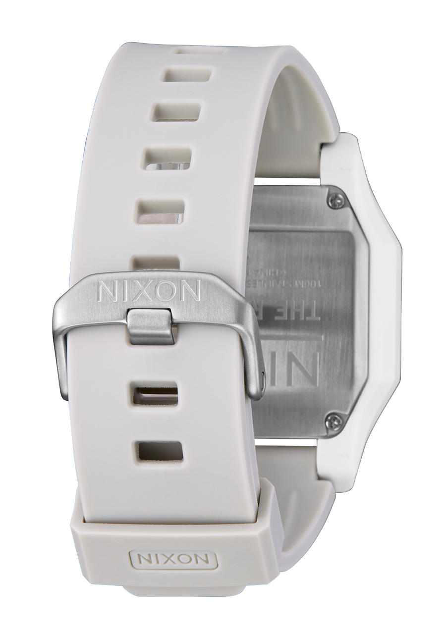 The Nixon Regulus is a highly durable watch with resistance to both water and shocks. We used Poron foam between the watch's brain and case, which acts as a shock-blocking shell. The watch is encased in a protective PU jacket and includes Poron foam padding for added shock absorption and durability. The Regulus also boasts a robust molded rubber strap and a stainless steel buckle, adding to its ruggedness and durability.