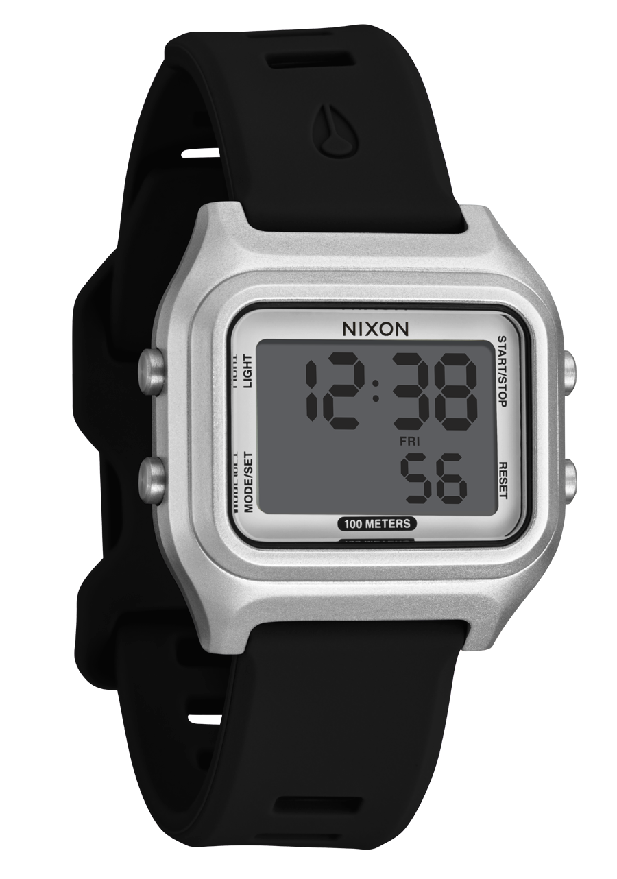Functions include time of day, day, alarm, stopwatch and bright backlight for after-hours.