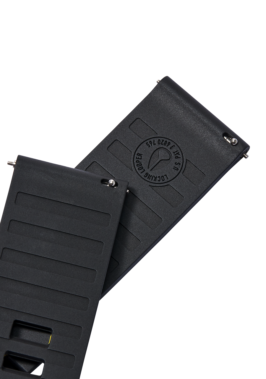 Stainless steel buckle with FKM rubber Locking Looper™.