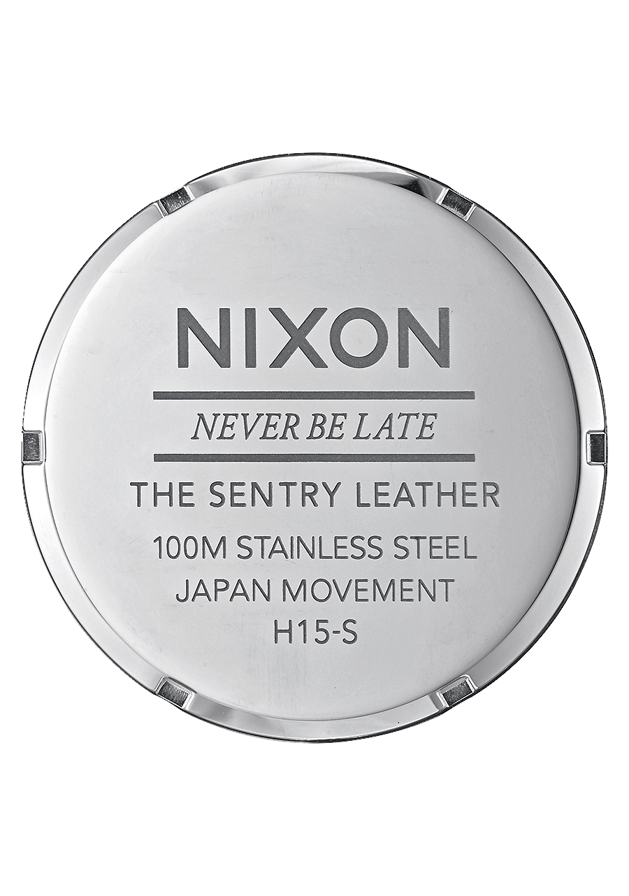 The Sentry Leather watch features a solid stainless steel case paired with a genuine leather strap. To care for the leather band, first wipe away any dust with a dry microfiber cloth. Then get the cloth slightly damp and gently wipe the strap. Lay the strap out to dry to complete the cleaning process. Visit the blog for more information.