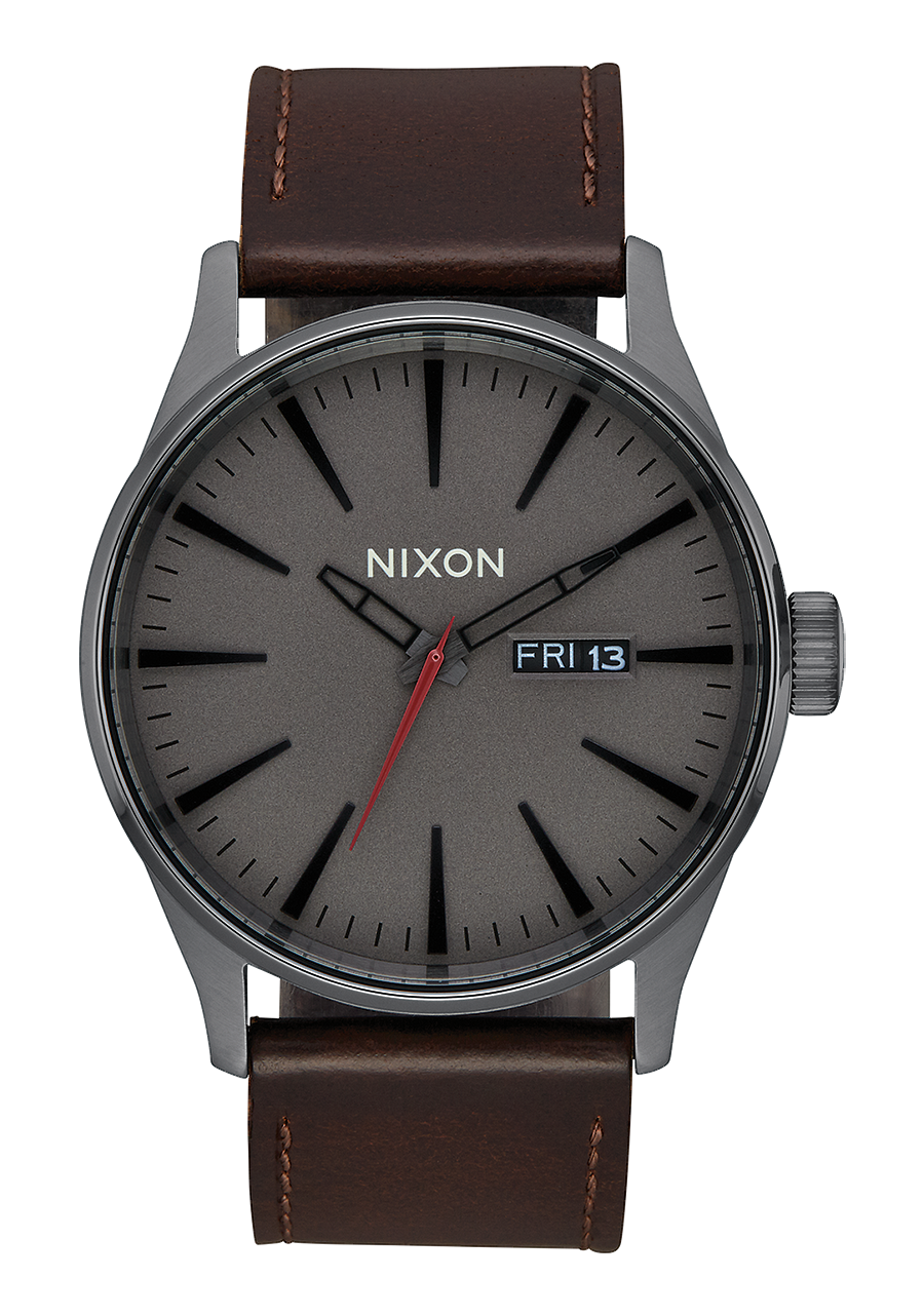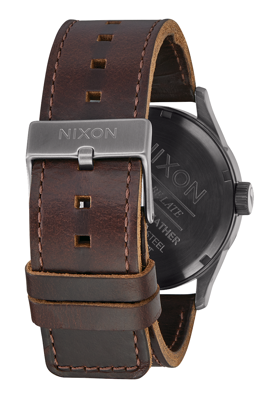 The Sentry Leather watch features a solid stainless steel case paired with a genuine leather strap. To care for the leather band, first wipe away any dust with a dry microfiber cloth. Then get the cloth slightly damp and gently wipe the strap. Lay the strap out to dry to complete the cleaning process. Visit the blog for more information.