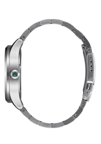 40mm custom solid stainless steel case with a 100 meter / 10 ATM water rating. Comes with a hardened mineral crystal, triple gasket crown with enamel fill, stainless steel screw down caseback and spring pin lugs.