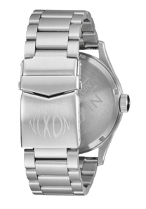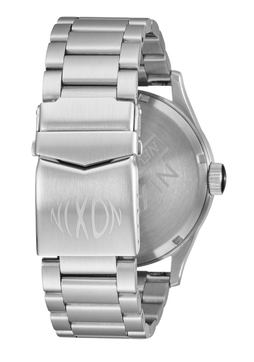 42mm custom solid stainless steel case with a 100 meter / 10 ATM water rating. Comes with a hardened mineral crystal, triple gasket crown with enamel fill, stainless steel screw down caseback and spring pin lugs.