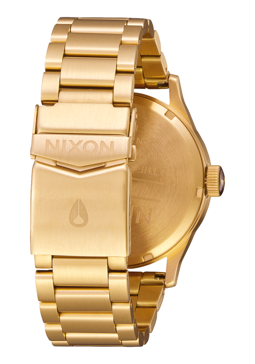 The Nixon Sentry Stainless Steel Watch is water resistant with a rating of 100 meters / 10 ATM. It is suitable for activities like swimming and surfing.