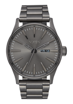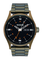 42mm custom solid stainless steel case with a 100 meter / 10 ATM water rating. Comes with a hardened mineral crystal, triple gasket crown with enamel fill, stainless steel screw down caseback and spring pin lugs.