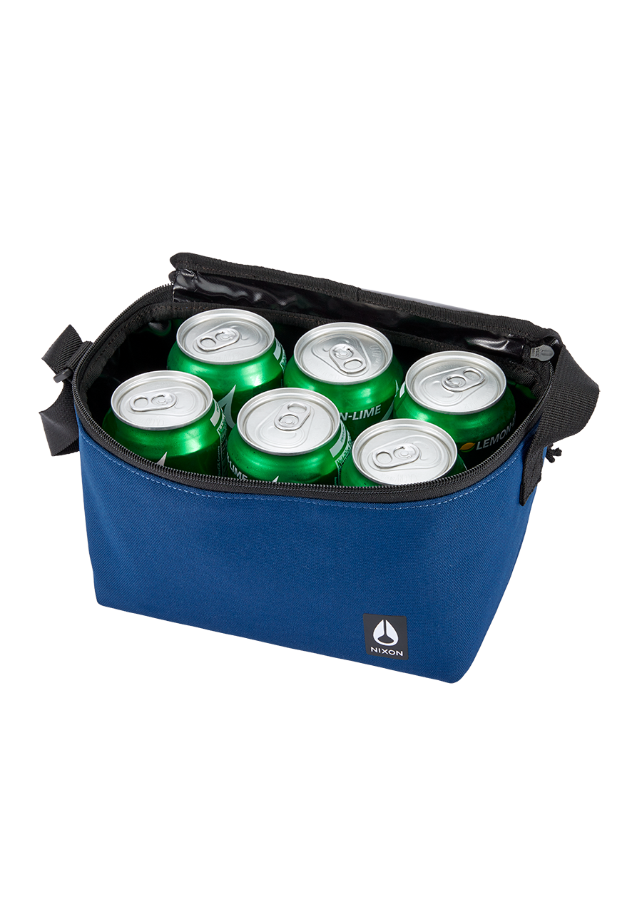 Six can capacity with adjustable carry strap and wipe-down friendly interior.