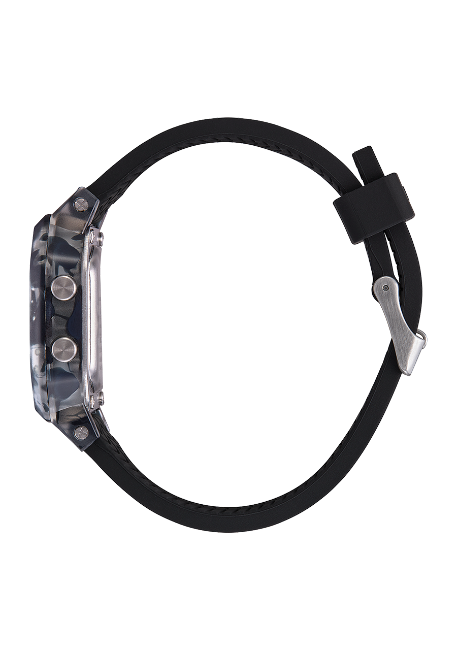38mm custom injection molded TR-90 watch case with a 100 meter / 10 ATM water rating. Comes with custom molded stainless steel gasketed pushers, stainless steel screw down caseback and stainless steel screw bar lugs.