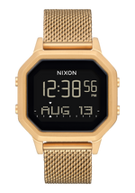 The Nixon Siren Milanese watch provides additional features such as a chronograph, customizable countdown timer, and an EL backlight. It also includes a dual time format (12 or 24-hours) and tide functionalities like basic and future tide.