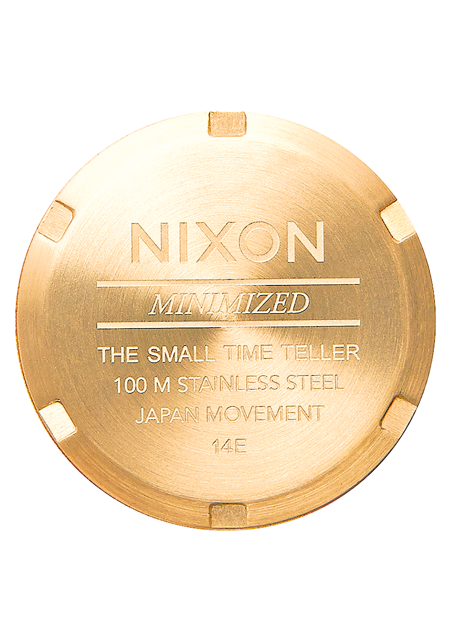 The Nixon Small Time Teller watch is water resistant with a rating of 100 meters / 10 ATM, making it suitable for activities like swimming and showering.