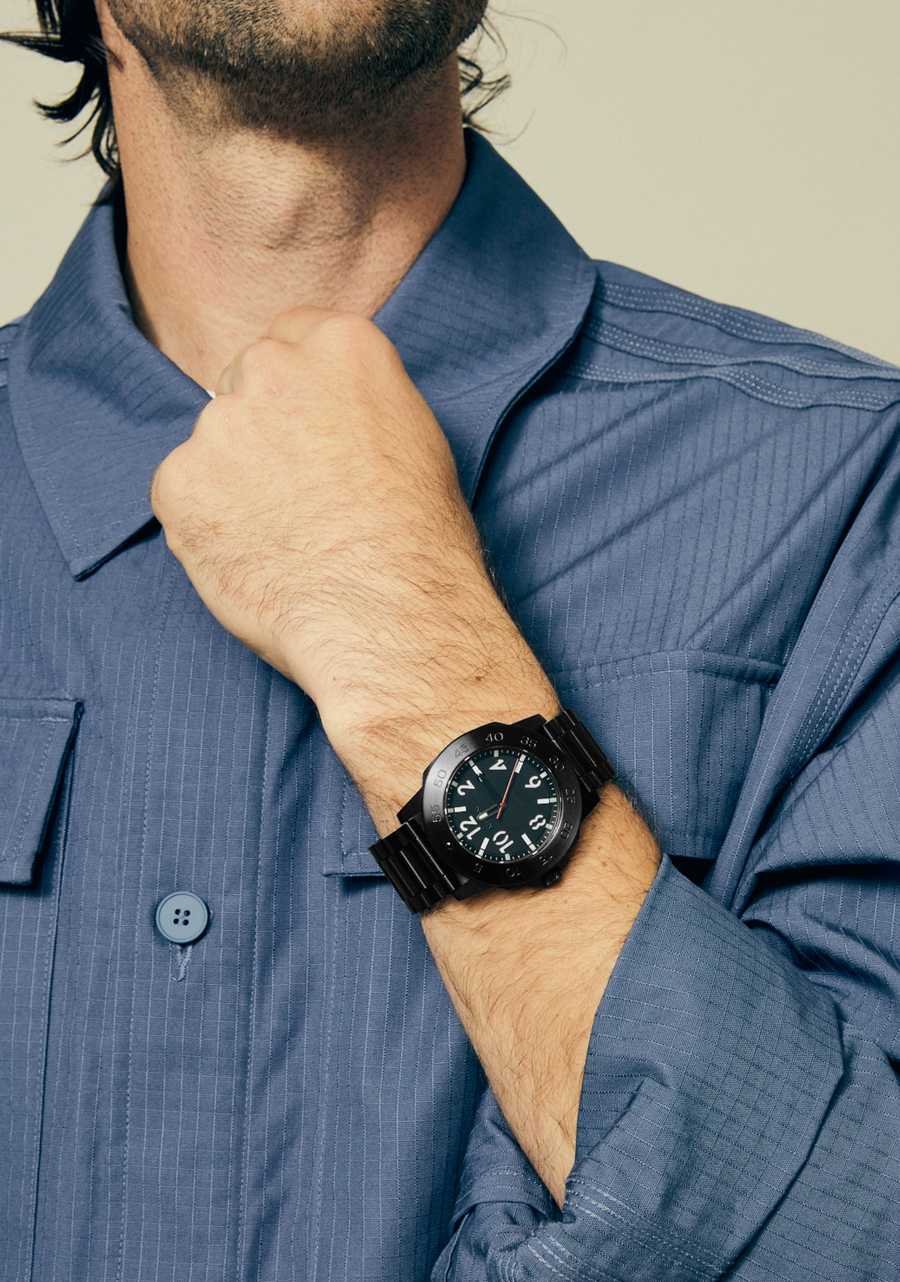 Crafted for more than just an accessory, the SMYTH 44 is built for the makers and creators. Decked with a durable sapphire crystal, the SMYTH 44 combines functionality with timeless style. A screw down crown placed at your 9 o’clock for added security, stamped numbered dial and under dial that is finished with Swiss Super-LumiNova® and a date window at your 3.