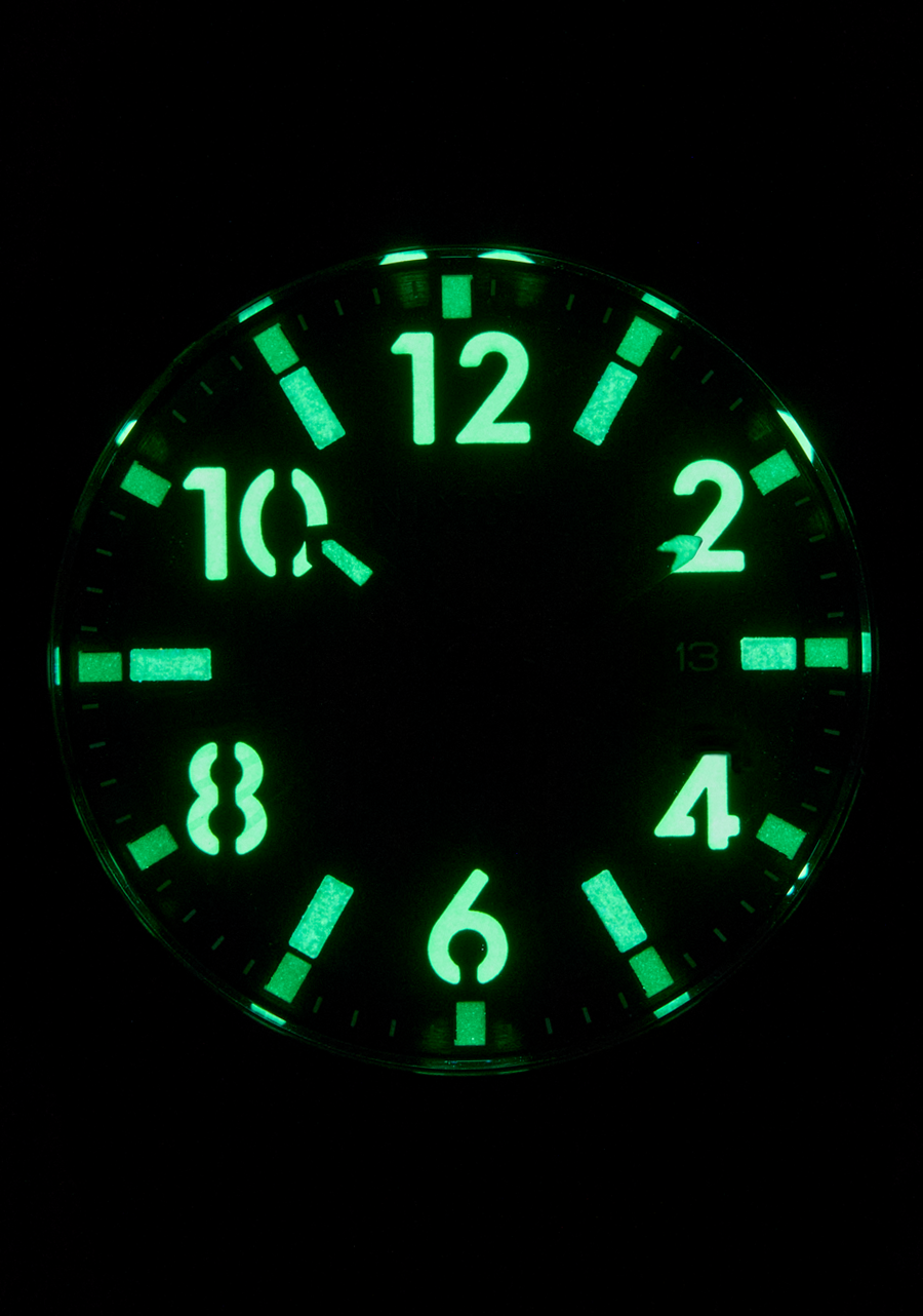 2-layer die-cut dial with a Swiss Super-LumiNova® underdial that shines bright when you're in dark conditions.