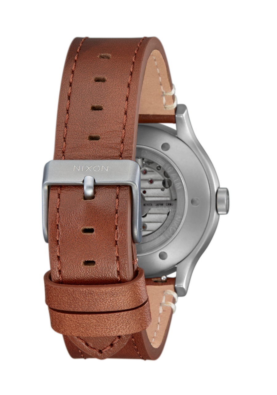The Spectra Leather sits exquisitely between defying tradition and paying homage to the classic art of watchmaking. Its twenty-one jewel automatic movement is fully displayed through the spectacular transparent skeleton face, punctuated by striking indices and the Nixon wordmark that appears to float above it all. It's daring, dimensional, and drops jaws anywhere it goes.