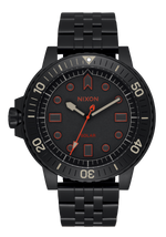 The Nixon Stinger 44 features a solid stainless steel case and a solid 5-link stainless steel bracelet with a deployant clasp. The watch is designed for durability and is water resistant to 100 meters / 10 ATM, making it suitable for everyday wear.