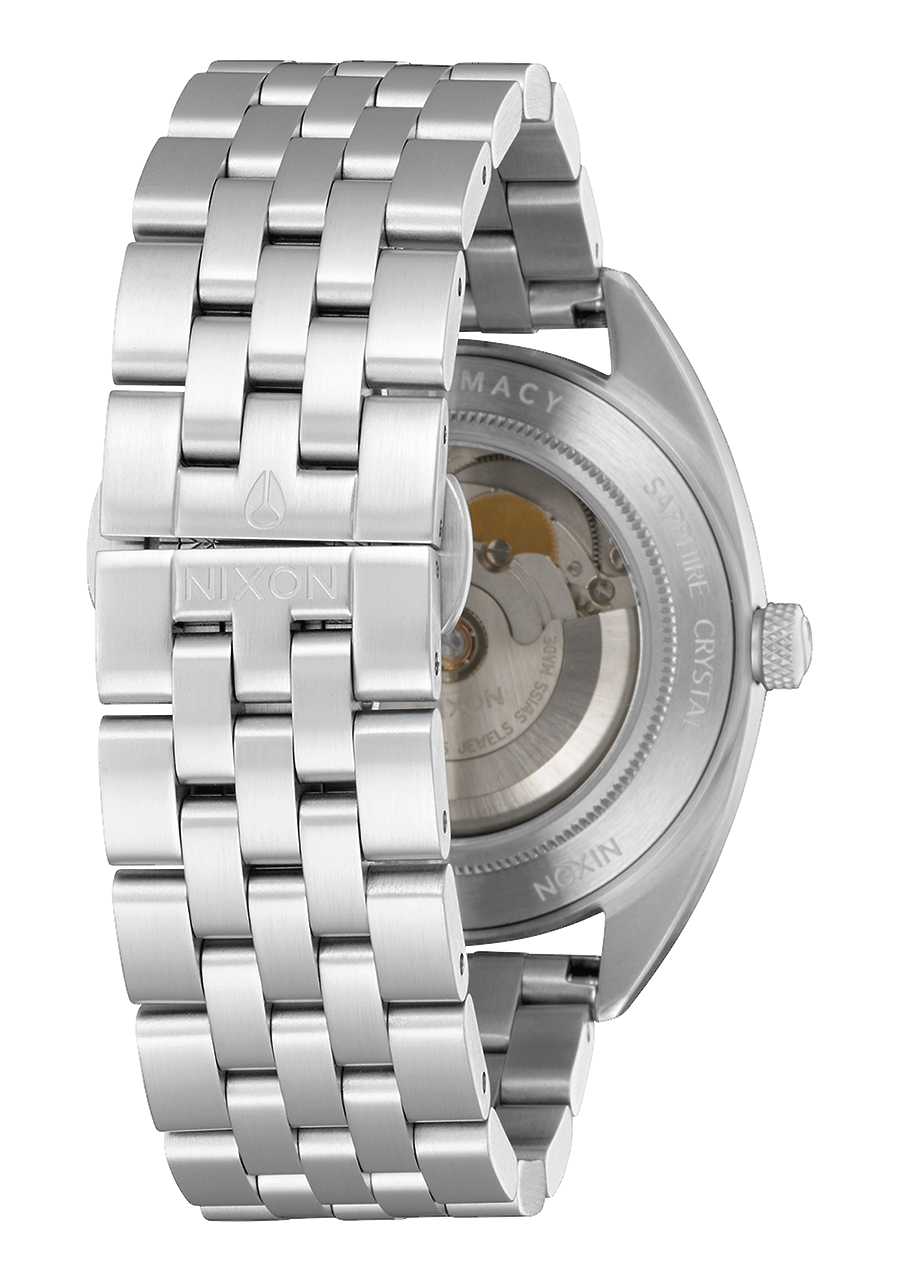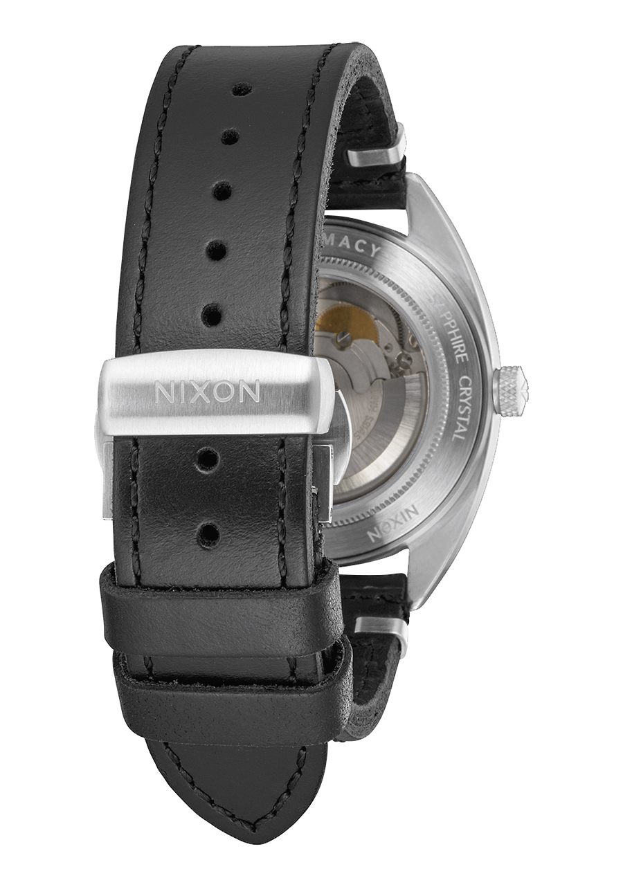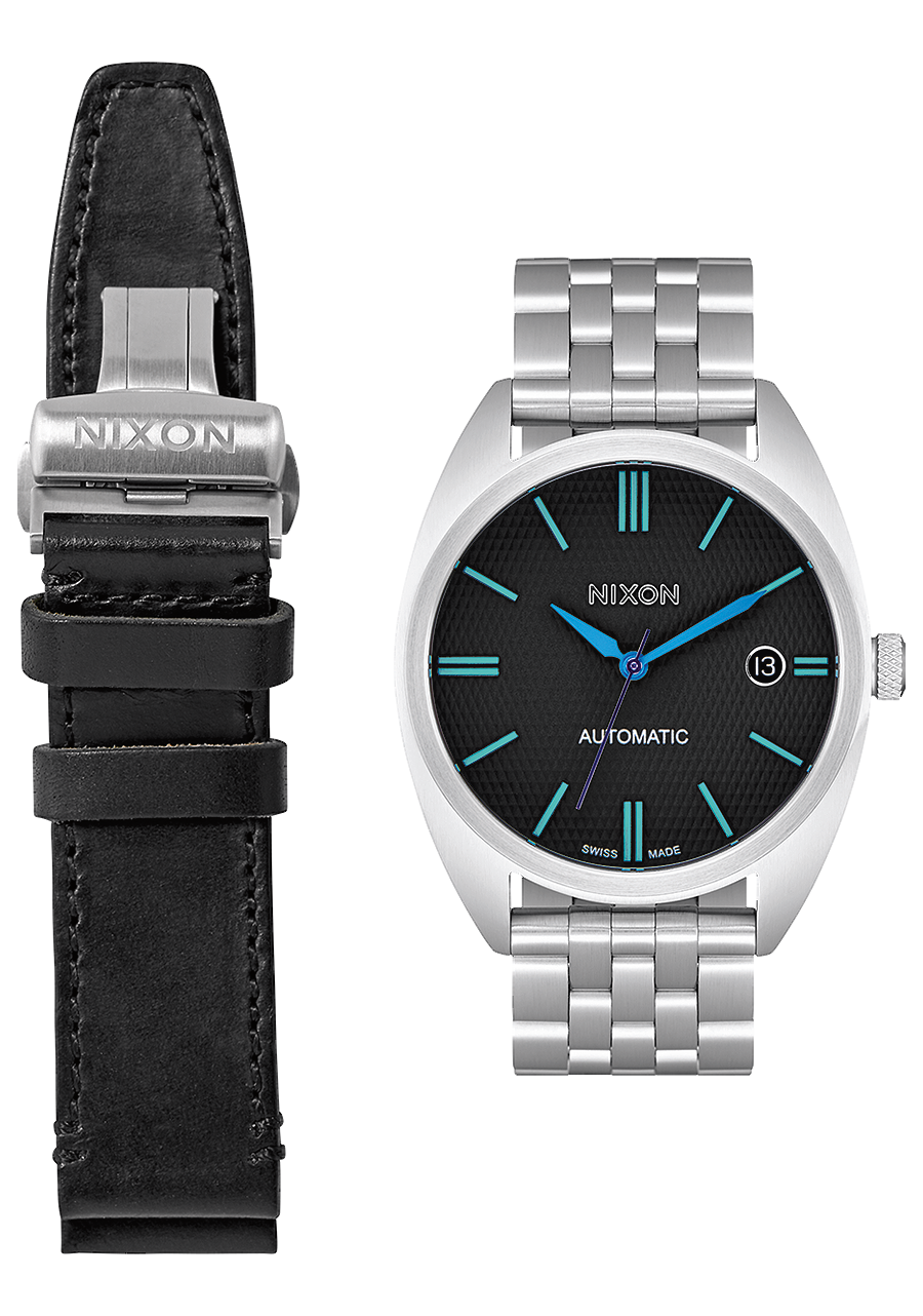 The Nixon Supremacy case is made from custom solid stainless steel. Both a stainless steel bracelet and a Horween leather strap are included.
