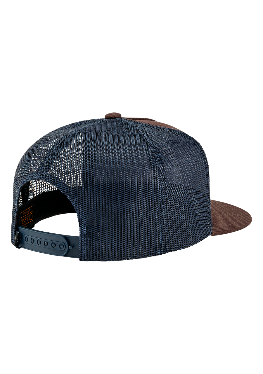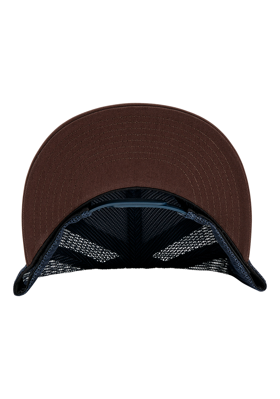 Color blocked, semi-deep trucker with tons of color and pattern combinations. The front panel and bill really pop against the mesh back, and the silicone logo patch on the front gives depth to this handsome headcover.