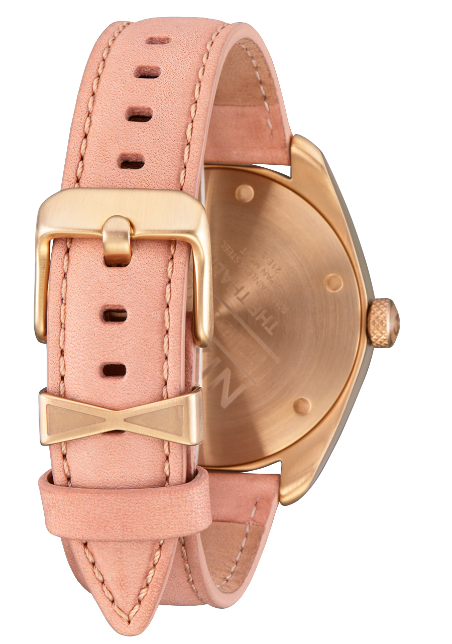 From the vegetable tanned leather with perimeter stitching down to the custom stainless steel bow-like looper and Nixon debossed buckle, Thalia’s slim silhouette is loaded with subtle stunners.