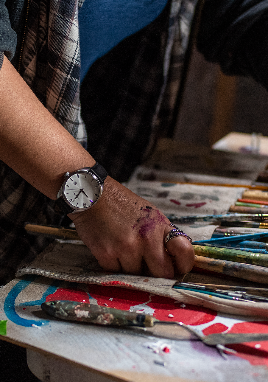 Don’t walk, strut. Thalia is elegant by design but bold by nature. Marrying minimalist design with considered details allows this wrist-piece to provide the time and date in a package that doesn’t distract.