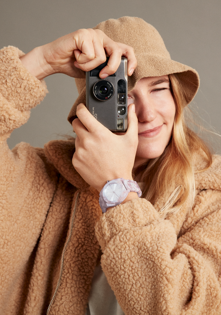 Our iconic timepiece gets decked out in an acetate finish, creating a rich and vibrant pop of color. Acetate is a plant-based composite with unlimited potential for customization. Each pattern is crafted to give the Time Teller’s classic design some contemporary flair.
