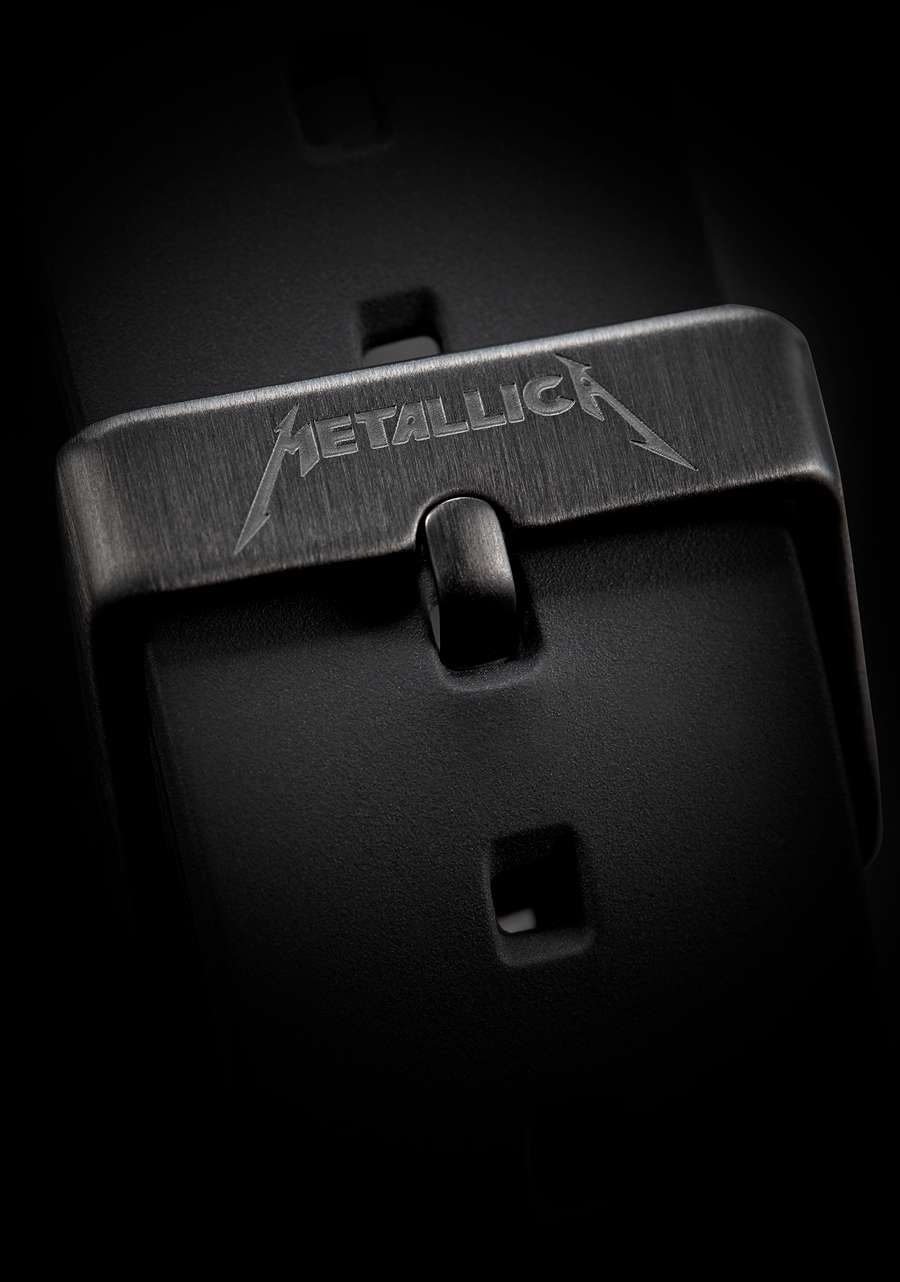 20-18mm tapered custom 5-link stainless steel bracelet and an adjustable stainless steel locking clasp.