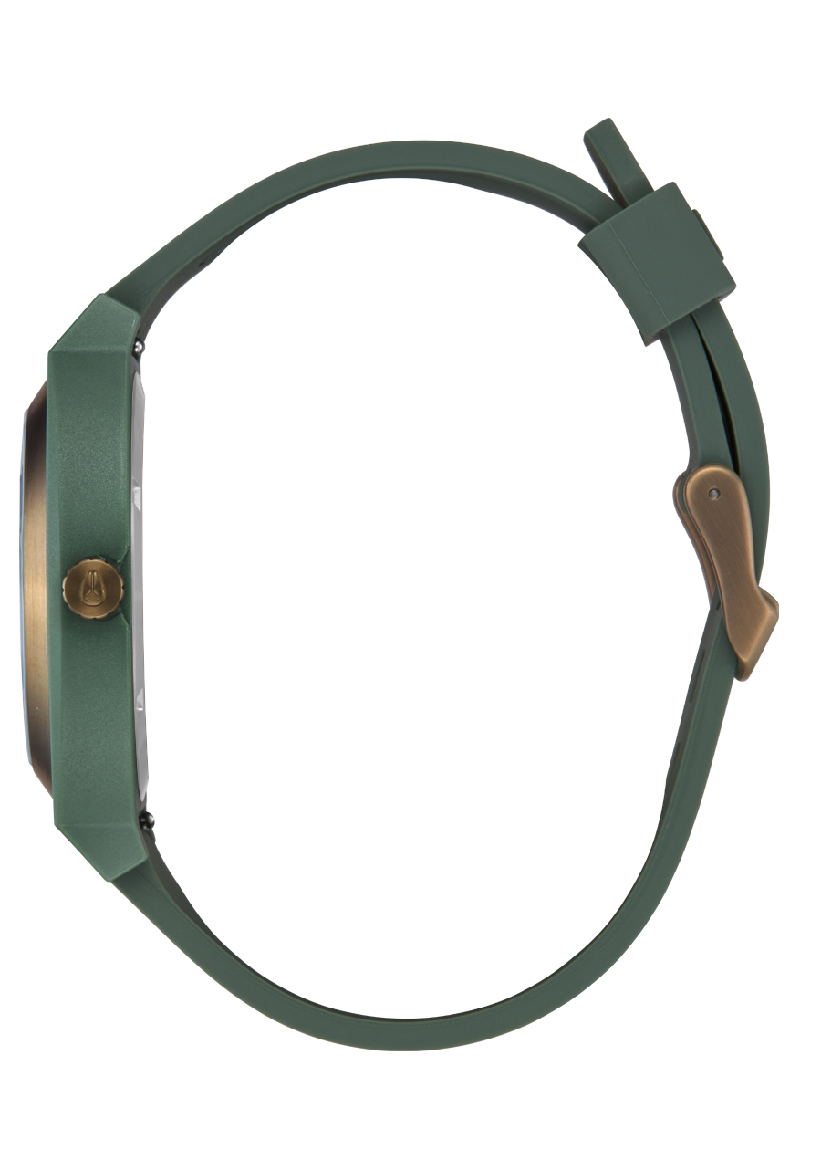 39.5mm recycled plastic case and solid steel fixed bezel with a 100 meter / 10 ATM water rating. Comes with a hardened mineral crystal, triple gasket stainless steel crown, stainless steel screw down caseback and spring pin lugs.